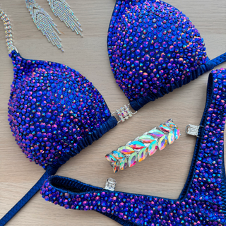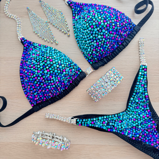Our Pre-Made Suits are ready-to-ship designs created to fit within a specific size range — perfect for competitors who need a beautiful, handcrafted suit without the custom production timeline.